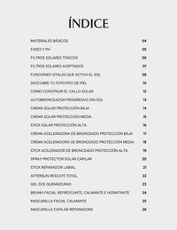 Solar es una guía para el cuidado y protección solar de la piel con productos naturales. Desde los filtros solares hasta cómo identificar tu fototipo y crear una rutina personalizada.